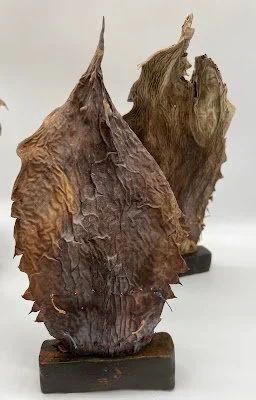 This installation is based on the continuance of beauty with decay. The woven sections were stitched with waxed linen threads using hues that represent the plant when it was growing.