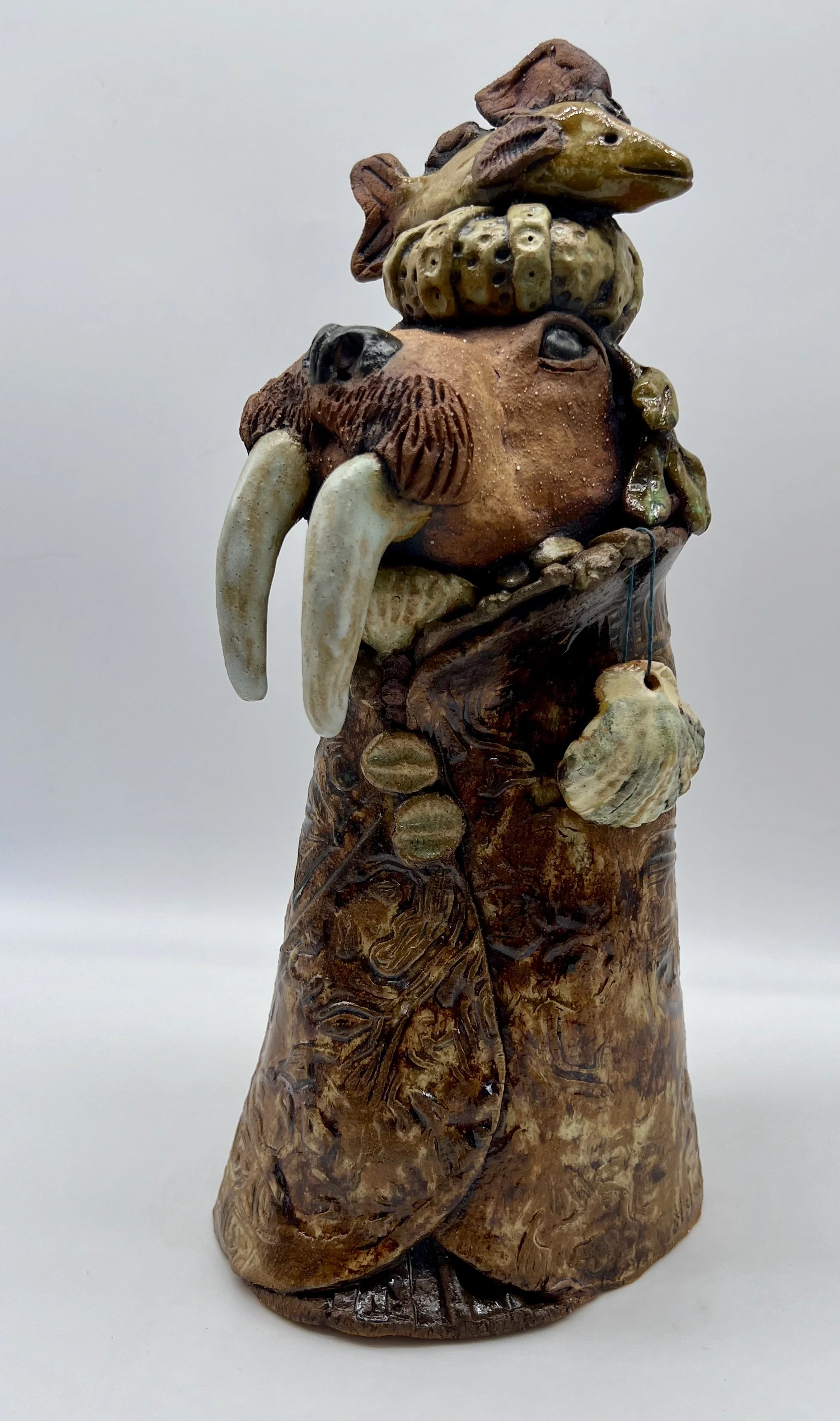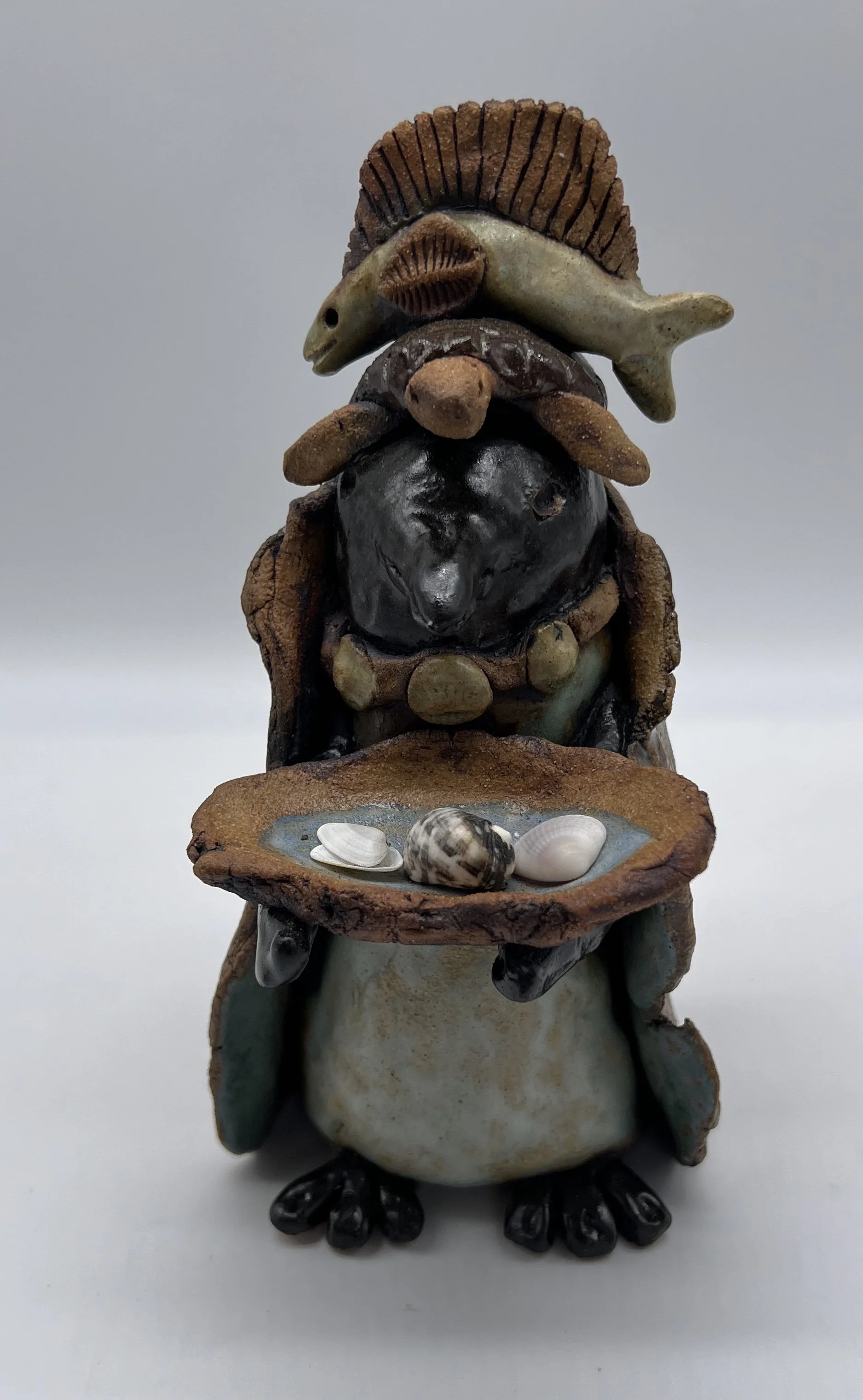 Karyn. Karyn and her children offer gifts in hopes of a better climate that will help them survive. She carries shells and other adornments to use as tools and amulets that tell stories.