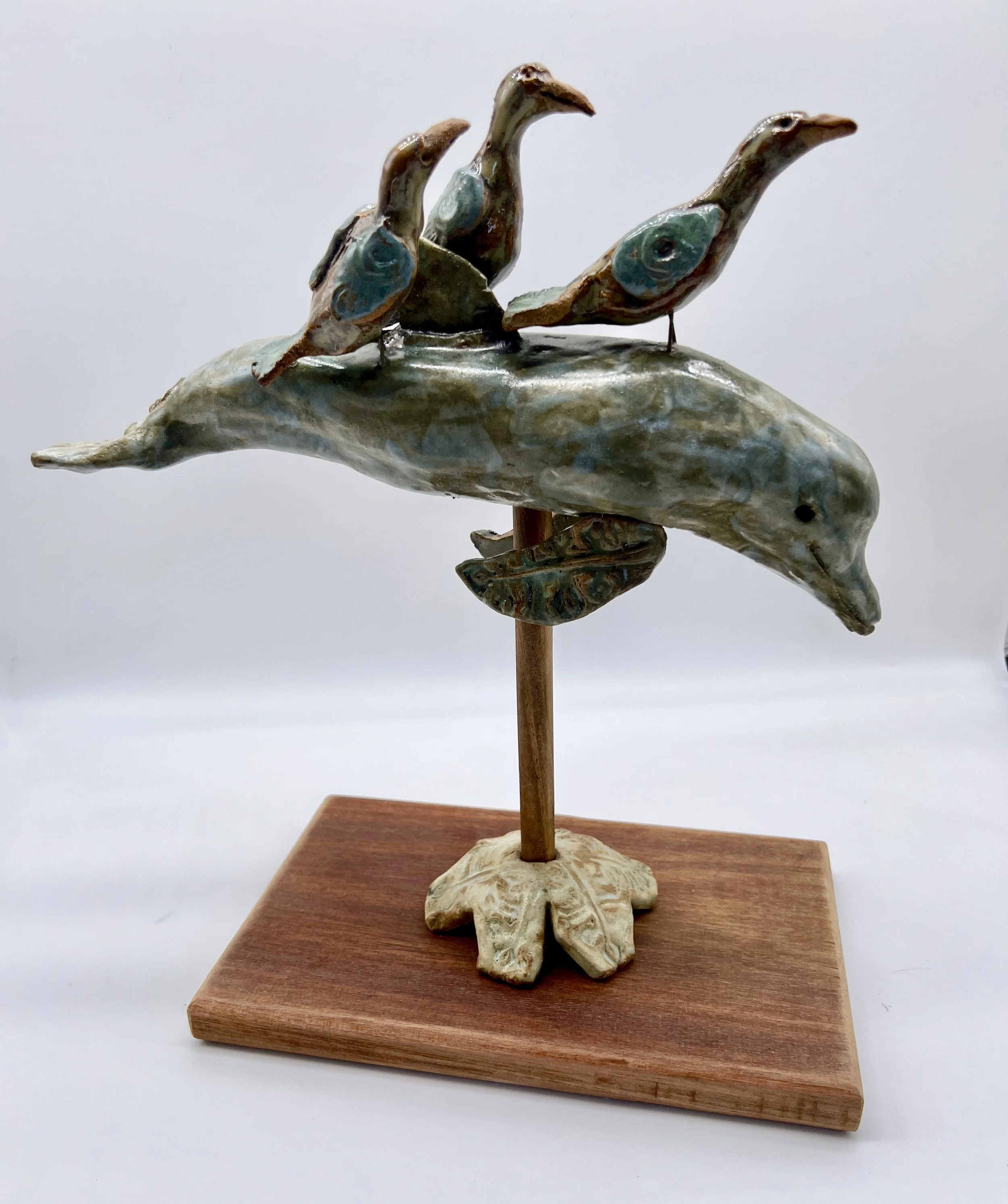 Denise and Chelsea. These Companions are holding shell offerings in hopes for good health, and abundant foods. Denise the dolphin gives Chelsea rides to new destinations better suited for her survival.